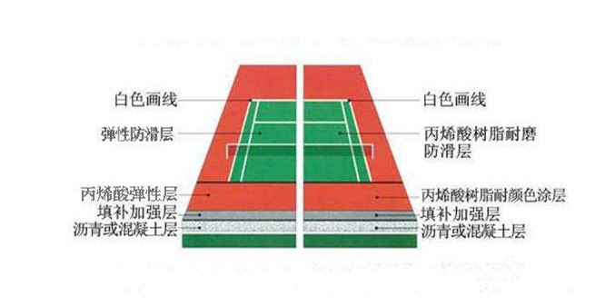 硬地丙烯酸面層 彈性丙烯酸面層產品結構: